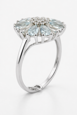 925 sterling silver Pear Aquamarine Floral Ring