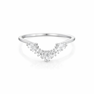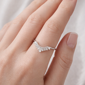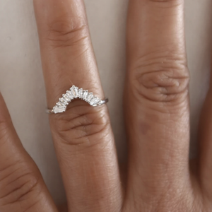 925 Sterling Silver Baguette Moissanite Wedding Band: Curved