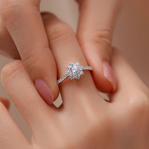 925 sterling silver vintage dainty sunflower 1ct Moissanite Ring