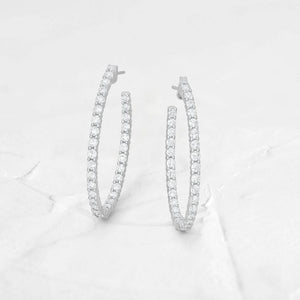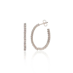 Classic sparkle, everyday wear. 1.3" inside-out hoop earrings set with colorless moissanite in solid 925 sterling silver.