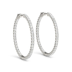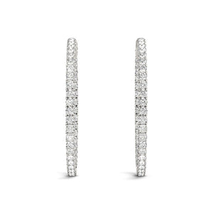 14k White Gold Diamond Hoop Earrings with Shared Prong Setting (2 cttw)