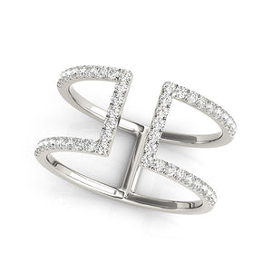 Wonderfully beguiling, this dual-band style ring showcases a parallel design and is pave set with brilliant diamonds. Crafted in fine 14k white gold.