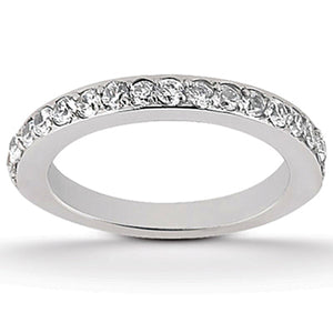 The generous width of the band and the depth of the settings give this bold pave diamond ring a distinct personality. Expertly crafted in 14k white gold, the pave set diamonds extend halfway across the band, making this ring suitable for those with an active lifestyle.