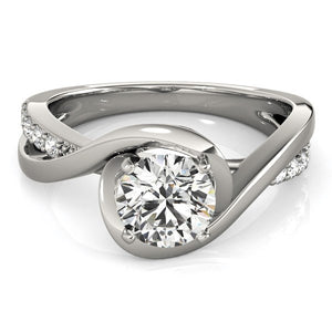 This round bypass style diamond ring features a split shank design with small diamonds down the shank. Beautifully crafted in fine 14k white gold.