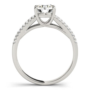 A darling of a round diamond ring in a prong setting. Featuring a lovely split shank design, this beauty showcases pave set stones. Crafted in 14k white gold.