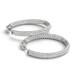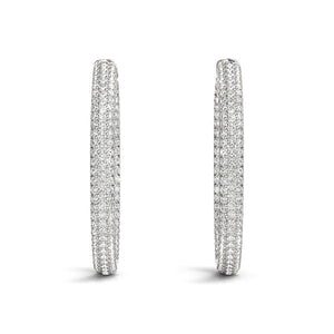 An Exhibiting eye-catching glamour and sophistication these hoop earrings showcase a double-sided design with two rows of pave set diamonds. Made of 14k white gold and secured with hinge locks.