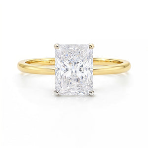Turn unforgettable moments into forever memories with this breathtaking 3 carat radiant-cut lab-grown diamond solitaire ring crafted to capture the essence of timeless elegance and modern style. IGI certified and graded G color with VS1 clarity, the diamond showcases remarkable brilliance and dependable quality. Set in a secure four-prong 14K white gold head and paired with a polished 14K yellow gold band, the elegant two-tone design creates a striking contrast that enhances any look. Perfect for engagements, anniversaries, or life’s most meaningful milestones, this ring is more than just jewelry it’s a powerful symbol of love and lifelong commitment.
