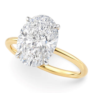 Celebrate life’s most meaningful moments with this stunning 5 carat oval lab-grown diamond solitaire ring where timeless elegance meets modern sophistication. IGI certified and graded G color with VS1 clarity, the diamond radiates with exceptional brilliance and premium quality you can count on. The classic four-prong 14K white gold head highlights the beauty of the stone, while the polished 14K yellow gold band creates a striking two-tone contrast that’s both elegant and contemporary. Perfect for proposals, anniversaries, or any unforgettable milestone, this meticulously crafted ring is designed to be cherished forever.