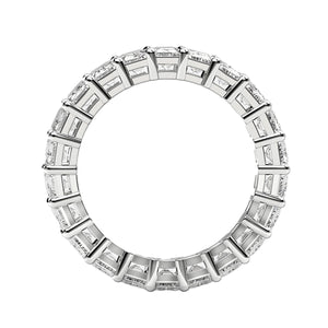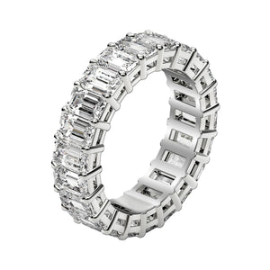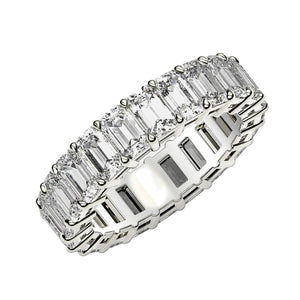 This dramatic eternity band features the traditional shine of 14k white gold, and the unparalleled sophistication of beautiful prong-set emerald cut lab grown diamonds. The light it radiates is as eternal and bright as the emotion it symbolizes.