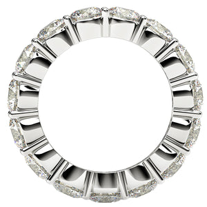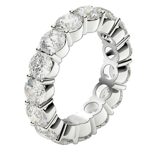 This beautiful eternity ring features the elegant simplicity of brilliant round cut lab grown diamonds in a classic, common prong style setting in 14k white gold. A timeless and sincere statement of love, it will be cherished for years to come.