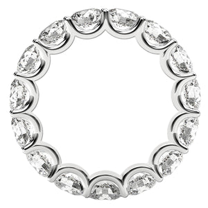 Intriguing curved prongs of glimmering 14k white gold encircle beautiful round cut lab grown diamonds with elegant, arch-like waves of shine in this spectacular eternity ring, adding contrast and organic shape to a traditional setting.