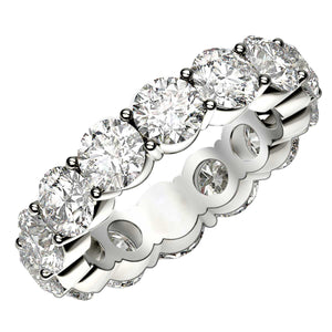 This beautiful eternity ring features the elegant simplicity of brilliant round cut lab grown diamonds in a classic, common prong style setting in 14k white gold. A timeless and sincere statement of love, it will be cherished for years to come.